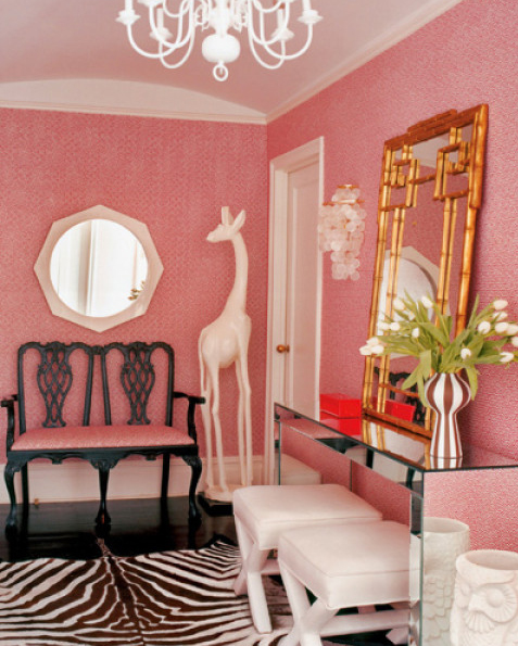 Here are a few photos that convey the versatility of this bold print - whether its an over-the-top glam accent to an already rich space, or a colorful version that exudes a graphic, preppy sensibility, the zebra print done right is perfectly divine.